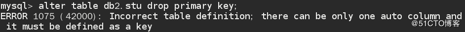 如果项设置复合主键,复合主键的特点是同时创建、同时删除,所以需要把主键删除,但是这里设置了自增,需要先把自增删除,才可以删除主键,如果不先删除自增,而直接删除主键的话会报错(如下)。
