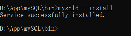 接着安装mysql服务,在bin目录下运行mysqld --install这里没加服务名,默认为mysql