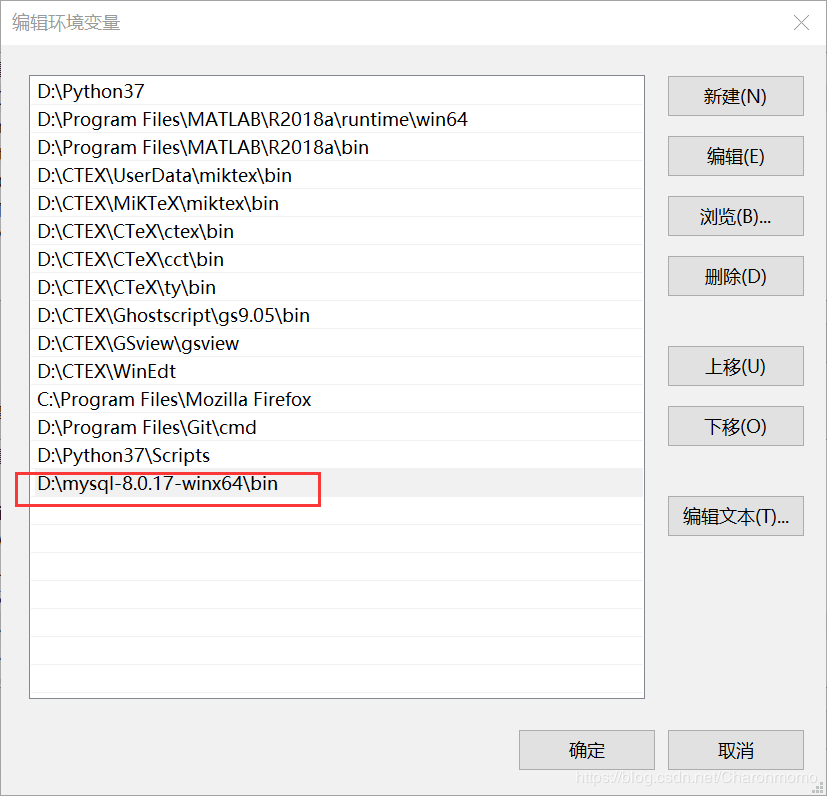 点击“编辑”,添加MySQL的bin文件夹的地址