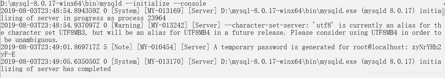 在MySQL安装目录D:\mysql-8.0.17-winx64\bin中输入:
