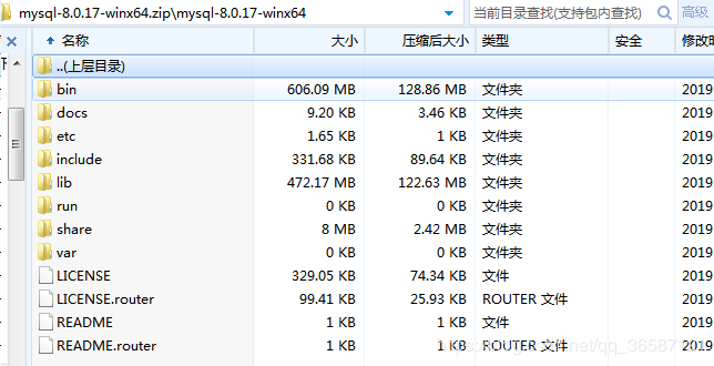 解压后,如下:你会发现没有data文件和my.ini配置文件