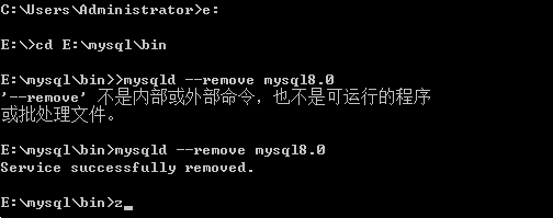 打开cmd窗口,进入到mysql下bin文件路径中,将mysql服务移除(mysql8.0是我服务名称)
