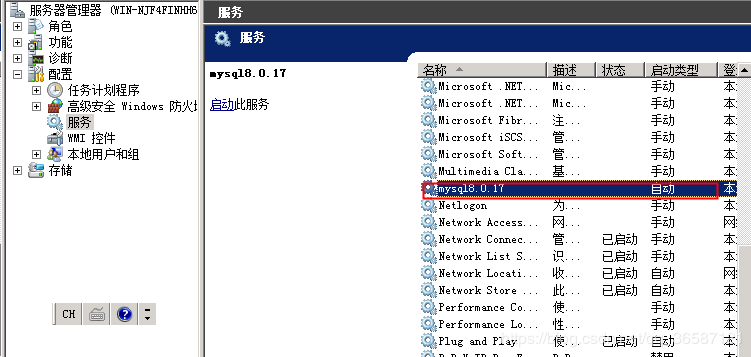 在win系统服务管理器中能看到刚安装的数据库mysql8.0.17最新版本