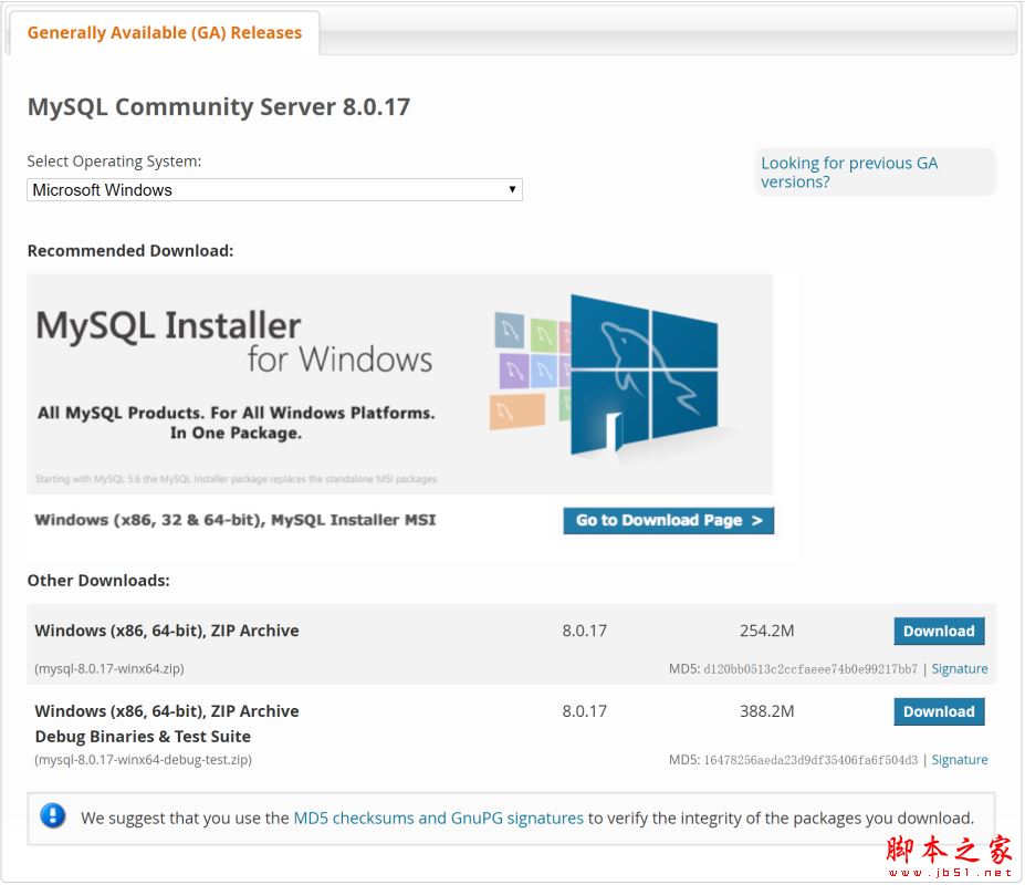 2.在MySQL官网上下载 Windows 版本的MySQL 安装包。
