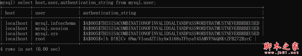 mysql> select host,user,authentication_string from mysql.user;