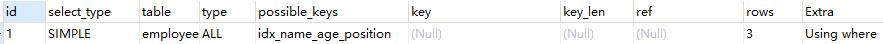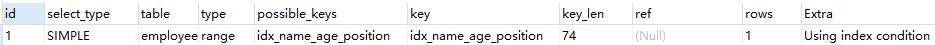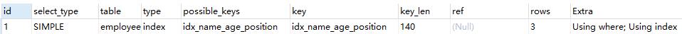 可以看到通过select出的字段是覆盖索引,MySQL底层使用了索引优化。在看另一个case: