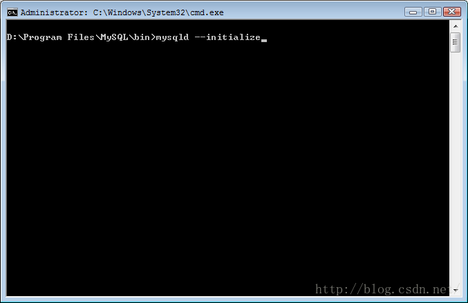 4、管理员打开cmd,切换到bin目录下;(或者配置MySQL环境变量) 输入:mysqld --initialize 并回车。(初始化MySQL)