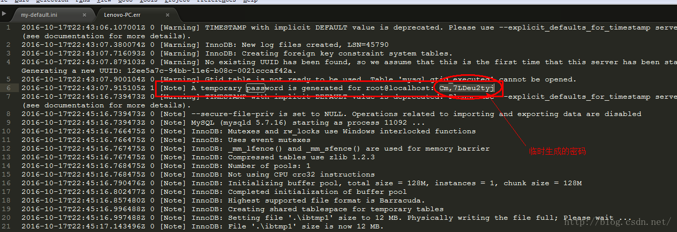 9、打开data目录,用记事本打开.err文件,搜索password会找到临时生成的密码,复制。