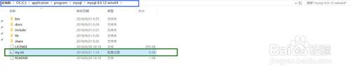 在解压的mysql根目录文件下面新建一个my.ini文件。篮框就是mysql根目录,绿框就是我们要创建my.ini文件,是一个配置设置的文件