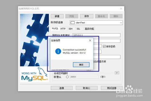 然后再到SQLyog,点击测试来凝结,这时就成功了。还显示你的mysql版本号。