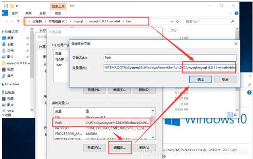 2、配置环境变量,和jdk一样进去,选中path编辑,添加mysql的目录(注意有一个英文的分号),然后3个确定。