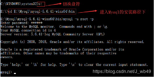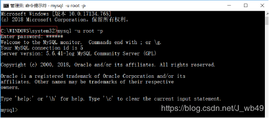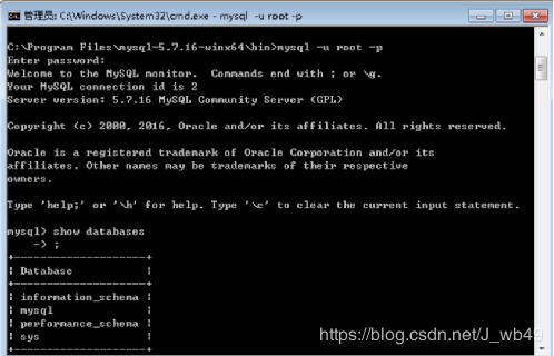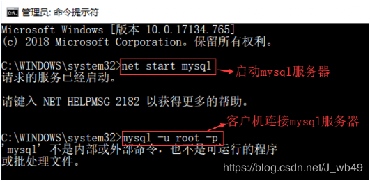 net start mysql 命令启动mysql服务, mysql -u root -p 命令登陆mysql数据库(刚安装完没有密码,直接回车)