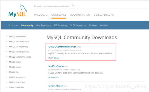 ①在浏览器中打开https://www.mysql.com/,进入MySQL的官网。点击DOWNLOADS。