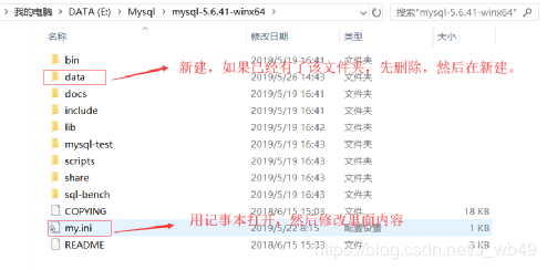 ⑧在mysql目录下新建文件夹data,并且修改mysql的配置文件