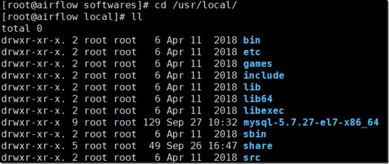 tar -zxf mysql-5.7.27-el7-x86_64.tar.gz -C /usr/local/