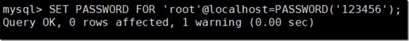 SET PASSWORD FOR 'root'@localhost=PASSWORD('123456');