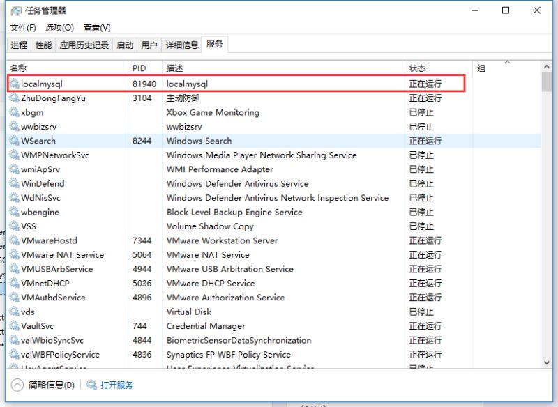 1、在进程中有mysql的进程