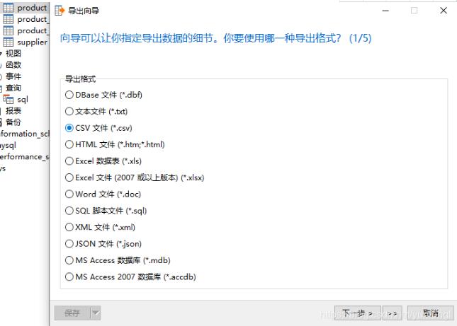 安装软件,这里有绿色免费版,非常好用,链接:https://pan.baidu.com/s/1HZNzq_16M5yrq9hAMfNOmA 提取码:848h 。打开软件,建立数据库连接,然后选择对应的表,右键->导出向导,选择格式即可。