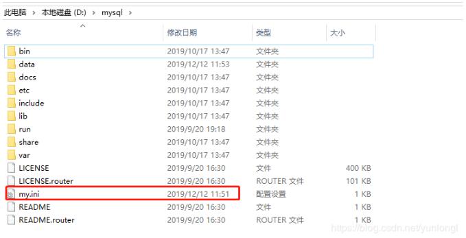 1,在mysql的安装目录下,找到my.ini,如果没有,就创建这个文件。我的电脑安装的mysql5.7并没有这个文件,于是我就创建了这个文件,我安装在D盘mysql目录。