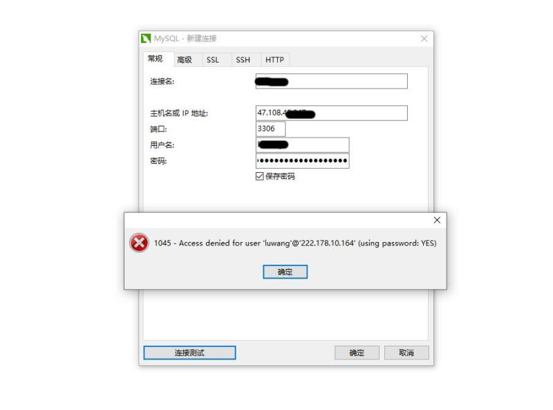 第二种情况往往会报错显示:1045 Access denied for user 'root'@'%' (using password:YES)。