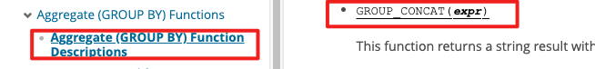 GROUP_CONCAT([DISTINCT] expr [,expr ...]