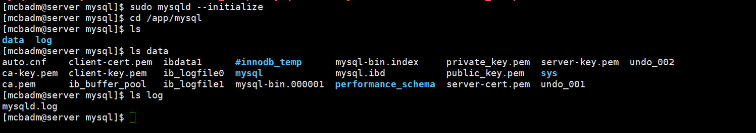 sudo /app/mysql/bin/mysqld --initialize-insecure --user=mysql --datadir=/app/mysql/data --basedir=/app/mysql (无初始密码的,若想要初始密码,使用--initialize)
