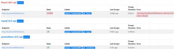 - job_name: 'linux' static_configs: - targets: ['localhost:9100'] - job_name: 'mysql' static_configs: - targets: ['localhost:9104']
