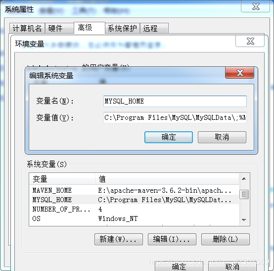 3、配置环境变量:(路径)C:\Program Files\MySQL\MySQLData\;%MYSQL_HOME%\bin