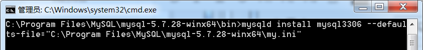 mysqld install mysql3306 --defaults-file="C:\Program Files\MySQL\mysql-5.7.28-winx64\my.ini"