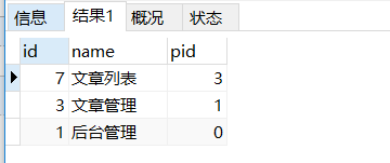 INSERT INTO `menu` (`id`, `name`, `url`, `pid`) VALUES ('7', '文章列表', '/manage/article/list', '3');