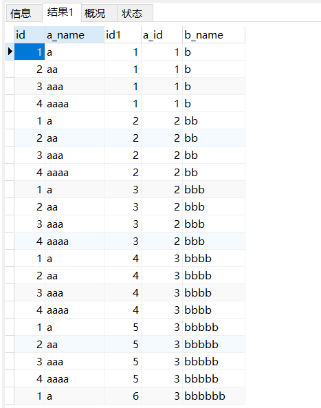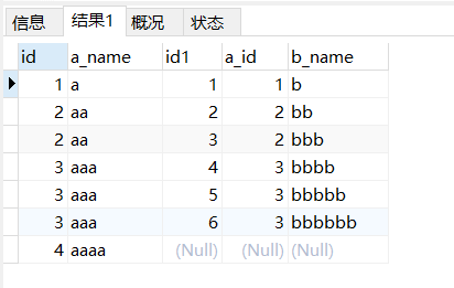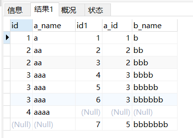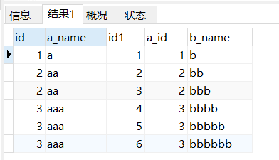 内连接可以理解为,两个表中同时满足某条件的数据记录组合。也就是表A和表B中满足条件a.id = b.a_id的所有记录。