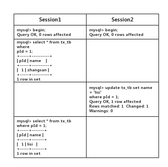 ps:作者注,这里的不同结果,指的是在行不变的情况下(专业点说,主键索引没变),主键索引指向的磁盘上的数据内容变了。如果主键索引变了,比如新增一条数据或者删除一条数据,就不是不可重复读。