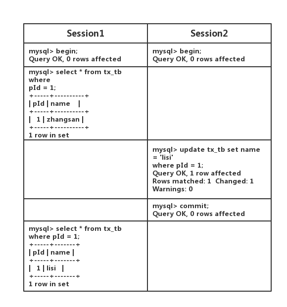 这个也能看的出来,一个事务能读到另一个事务已提交的数据!为了便于说明,我简单的画图说明!