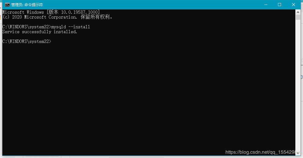 在命令行窗口输入,回车,提示:Service successfully installed,说明注册服务成功。