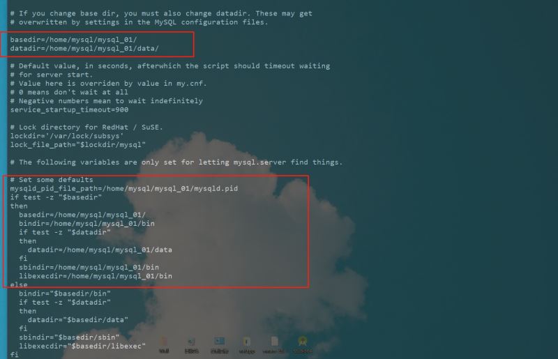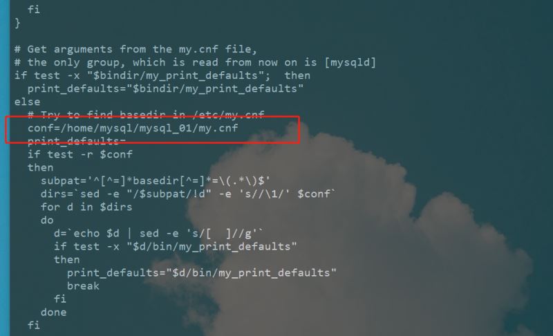 以及修改该文件中加载的MySQL配置文件路径,修改为刚才创建的my.cnf文件,如下图,修改完成后,保存退出。