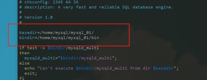 # 修改support-files文件夹下的mysqld_multi.server文件 vim ./support-files/mysqld_multi.server #还是修改basedir和datadir两项属性,如下图所示
