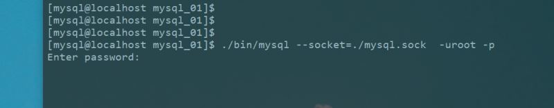 # 切换到mysql_01的根目录 cd /home/mysql/mysql_01/ # 初始化安装 --defaults-file表示指定初始化的配置文件 --console表示将初始化信息打印在控制台 ./bin/mysqld --defaults-file=/home/mysql/mysql_01/my.cnf --initialize --console --user=mysql # 初始化成功后,会在控制台中打印出初始化密码,大致格式如下 root@localhost: fa356fgss,