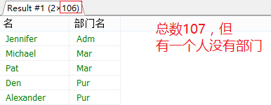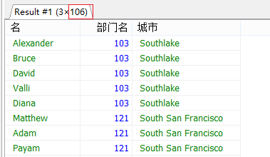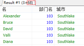 #案例2.查询员工名,部门名与所在的城市,城市以s开头。 SELECT first_name AS 名,d.manager_id AS 部门名,city AS 城市 FROM employees AS e,departments AS d,locations AS l WHERE e.department_id = d.department_id AND d.location_id = l.location_id AND city LIKE 's%';