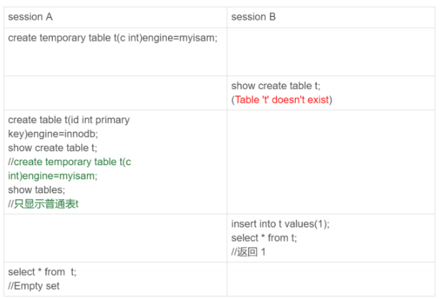 create temporary table temp_t(id int primary key)engine=innodb;