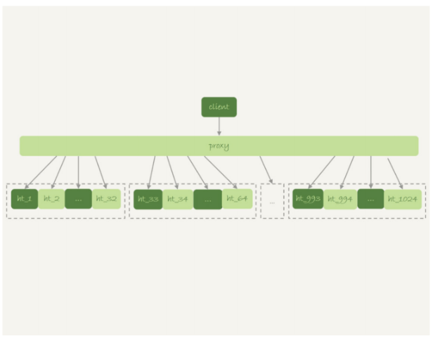 一般分库分表的场景,就是要把一个逻辑上的大表分散到不同的数据库实例上。比如。将一个大 表ht,按照字段f,拆分成1024个分表,然后分布到32个数据库实例上。