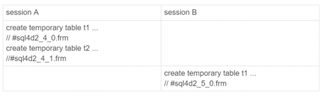 这个进程的进程号是1234,session A的线程id是4,session B的线程id是5。所以session A和session B创建的临时表,在磁盘上的文件不会重名