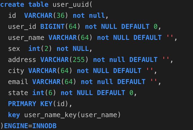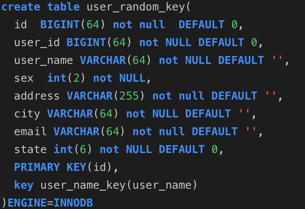 1.1:要说明这个问题,我们首先来建立三张表,分别是user_auto_key,user_uuid,user_random_key,分别表示自动增长的主键,uuid作为主键,随机key作为主键,其它我们完全保持不变.根据控制变量法,我们只把每个表的主键使用不同的策略生成,而其他的字段完全一样,然后测试一下表的插入速度和查询速度: