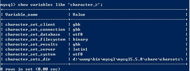 character_set_client =>gbk:转换器就知道客户端发送过来的是gbk格式的编码