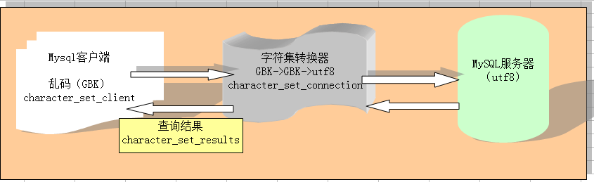 首先,通过mysql客户端,将数据发送给Mysql服务器,经过字符集转换器的时候,由于character_set_connection 值为gbk,所以会将客户端发送过来的数据转为gbk格式,紧接着,字符集转换器将数据要传送给服务器的时候,发现服务器是以utf8保存数据的,所以,在其内部会自动将数据由gbk转换成utf8格式