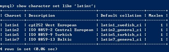 注意:Maxlen列显示用于存储一个字符的最大的字节数目。