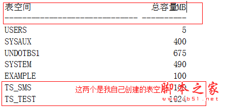 SQL> selecttablespace_name "表空间" , bytes/1024/1024 "总容量MB" fromdba_data_files;