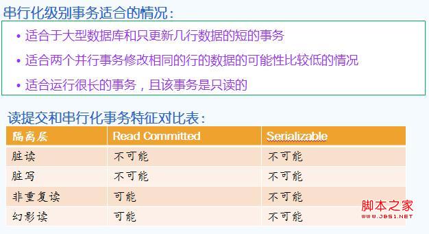 隔离层未提交的读模式提交的读模式重复读模式串行化模式脏读可能不可能不可能不可能非重复读可能可能不可能不可能幻影读可能可能可能不可能