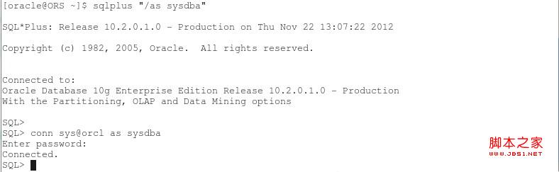 SQL> conn sys@orcl as sysdba