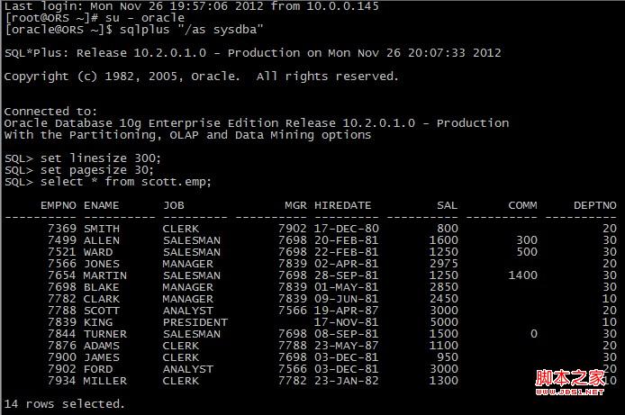 SQL*Plus: Release 10.2.0.1.0 - Production on Mon Nov 26 20:07:33 2012