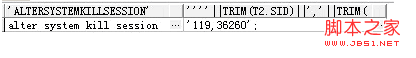 select 'alter system kill session ',''''||trim(t2.sid)||','||trim(t2.serial#)||''';'